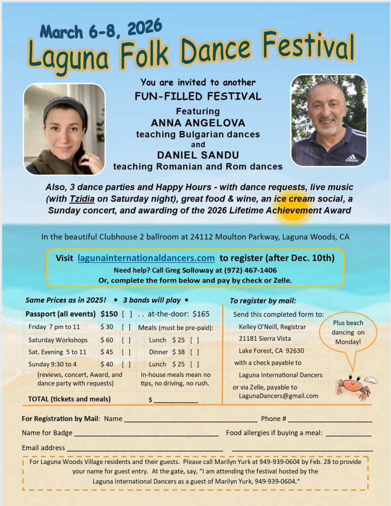 Donation: $7 Cash, Zelle (to lagunadancers@gmail.com), or PayPal